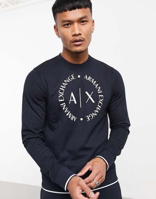 Armani Exchange circle logo crew neck sweatshirt in navy SUIT 1 ASOS Very well made.