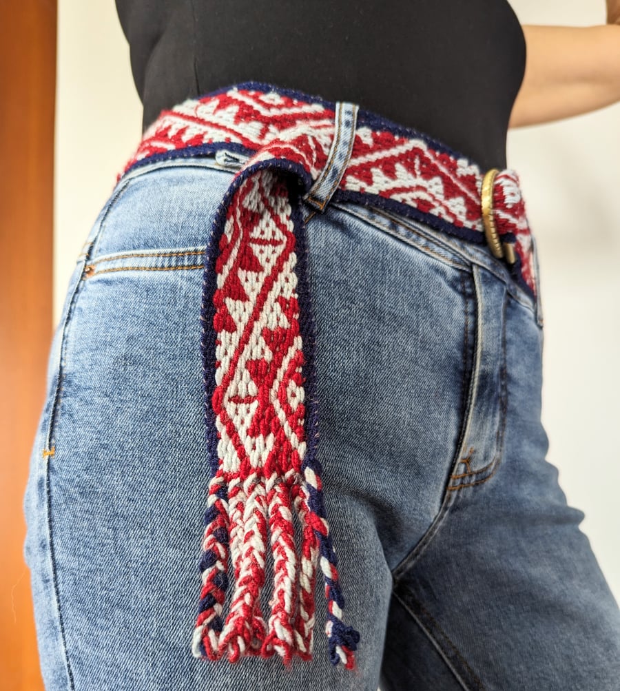 Boho belt using peruvian artisans weaving. Handmade belt. 1.10 m length Very well made.