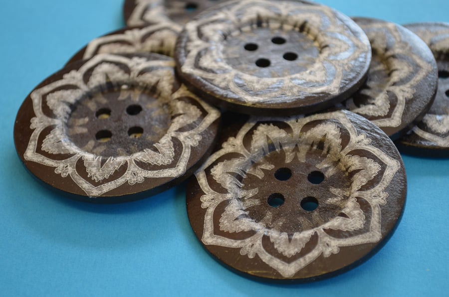 Giant Wooden Buttons 60mm Natural Brown Button Huge Large Flower G4 Very well made.