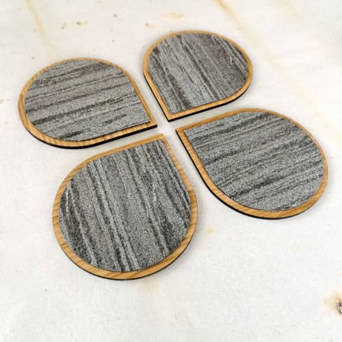 Gray drop shape drink coasters of stone wood. Set of 4 by Very well made.