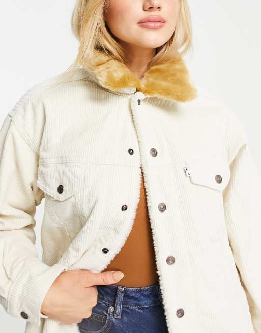 Levi s oversized cord trucker jacket with fur collar in ecru Very well made.