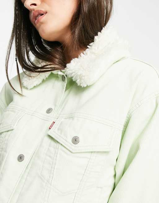 Ex boyfriend Corduroy Sherpa Trucker Jacket Green Levi s US Very well made.
