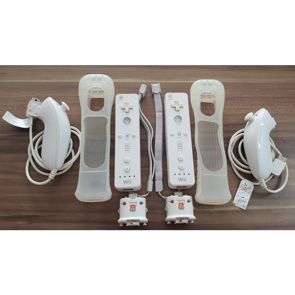 2 Wii Remotes C Adaptador Motion Plus Inside 2 Nunchuks Original Nintendo Wii Branco Very well made.