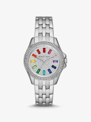 Mini Pilot Baguette Rainbow Pav Silver Tone Watch Michael Kors Very well made.