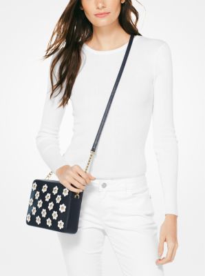 Michael Kors Beige Leather Jet Set Floral Embellished Crossbody Bag Very well made.