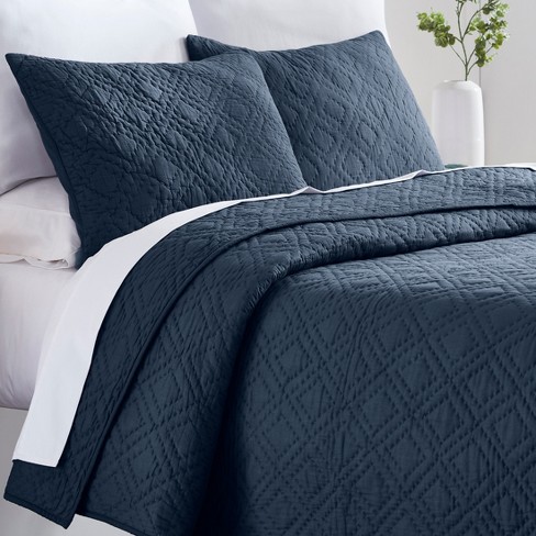 Swift Home Enzyme washed crinkle coverlet quilt set Navy Solid Very well made.