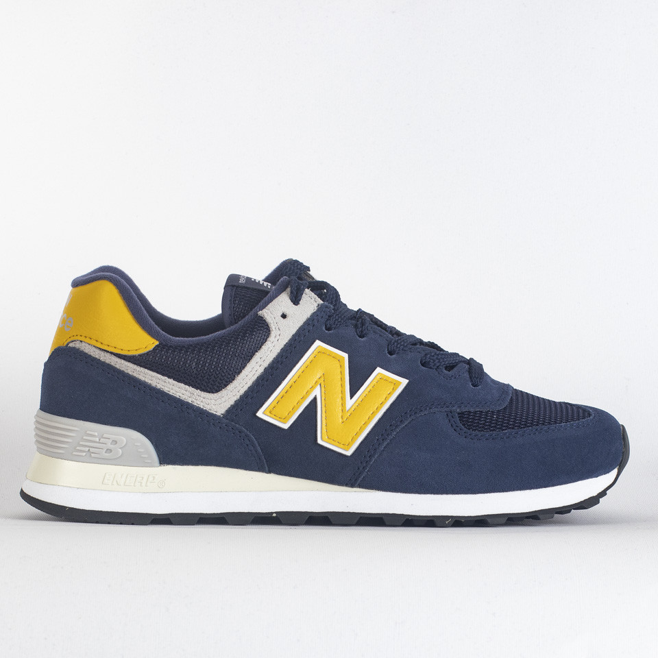 Size 7.5 New Balance 574 Navy Yellow for sale online eBay Very well made.