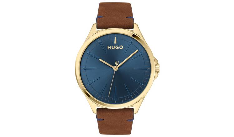 Buy HUGO Men s Brown Leather Strap Watch Men s watches Argos Very well made.