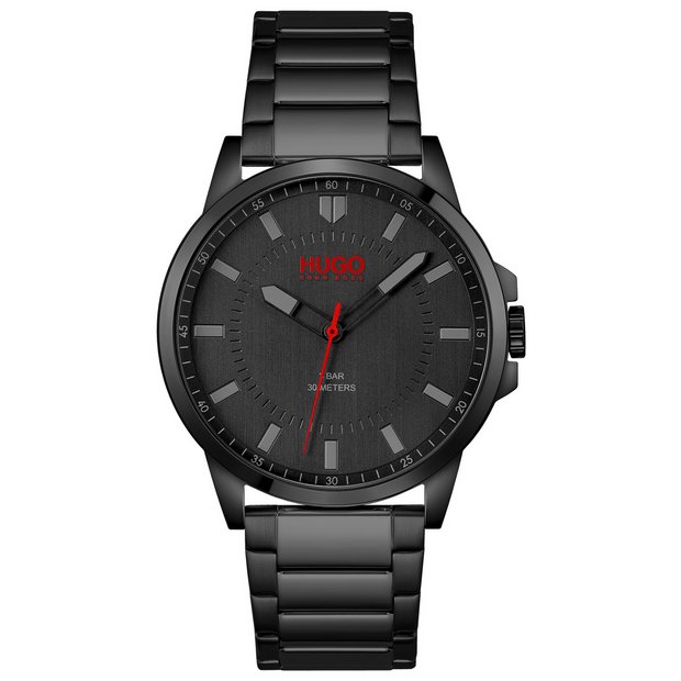 Buy HUGO Men s Black Dial Black IP Bracelet Watch Men s watches Argos Very well made.