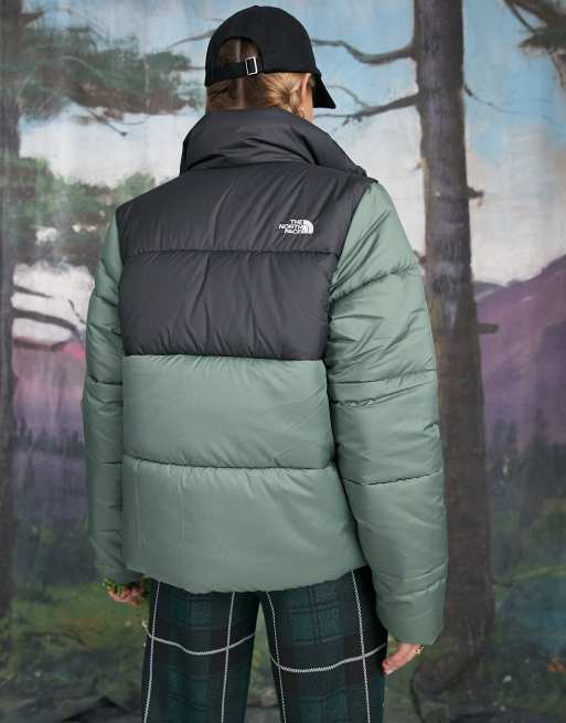 The North Face Synthetic puffer jacket in khaki and black Exclusive at ASOS Very well made.