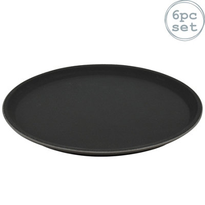 2 x 35cm Round Black Plastic Trays Food Drinks Dinner Serving Very well made.