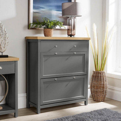 Sesslife Shoe Cabinet with 2 Flip Drawers Modern 20 Pair Shoe Rack Organizer Freestanding Tipping Bucket Shoe Storage Cabinet for Entryway Gray Very well made.