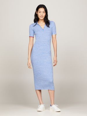 Ribbed Marl Polo Midi Dress Blue Tommy Hilfiger Very well made.