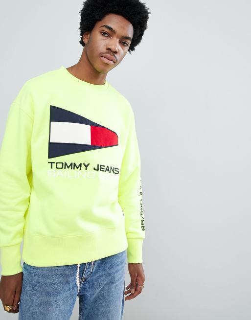 Tommy Jeans 90s Sailing Capsule flag logo crew neck sweatshirt in neon yellow Very well made.