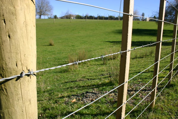 Barbed wire fence barbs New Zealand NZ . Stock photo from New Very well made.