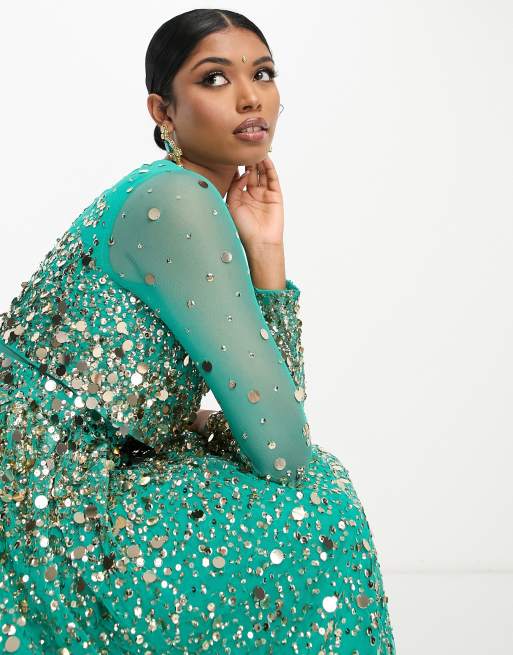 ASOS DESIGN Maxi anarkali dress in scatter sequin in turquoise Very well made.