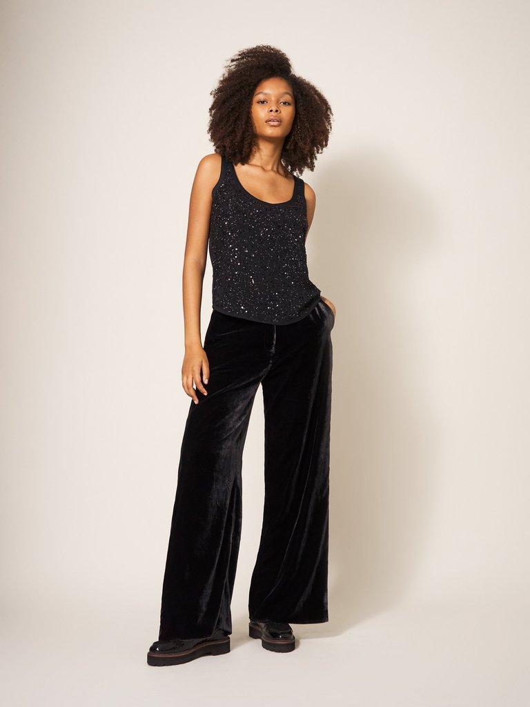 Jenny Velvet Wide Leg Trouser in PURE BLACK Very well made.