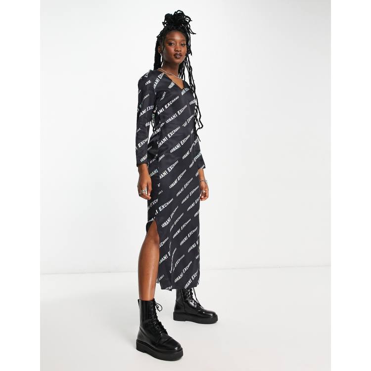 Armani Exchange logo print aline midi dress in black Very well made.