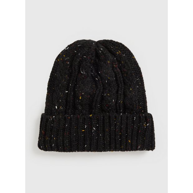 Buy Black Cable Knit Neppy Yarn Coord Beanie Hat One Size Accessories Tu Very well made.