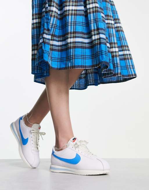 Nike Cortez leather trainers in white and university blue Very well made.