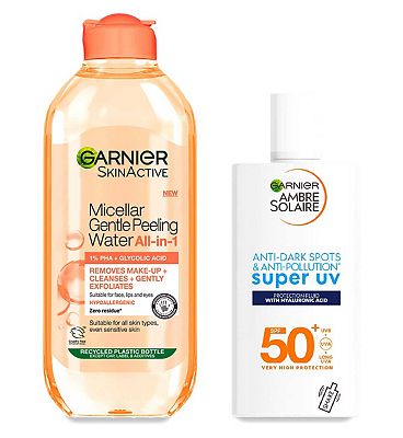 Garnier Micellar Gentle Peeling Water and Super UV Face Fluid Very well made.