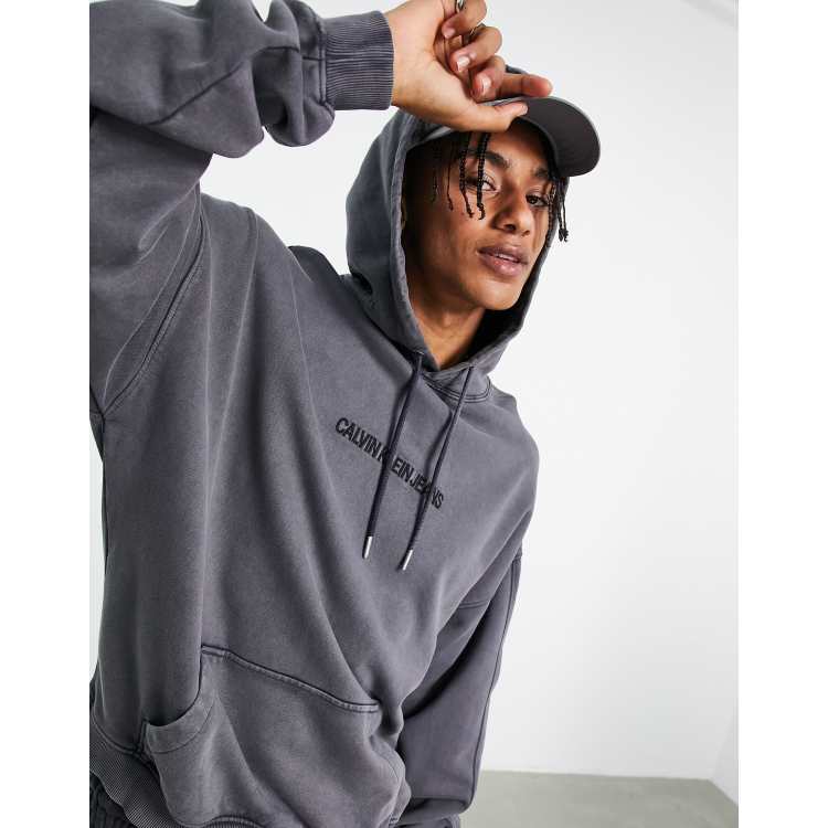 Calvin Klein Jeans chest logo acid wash hoodie in black ASOS Very well made.