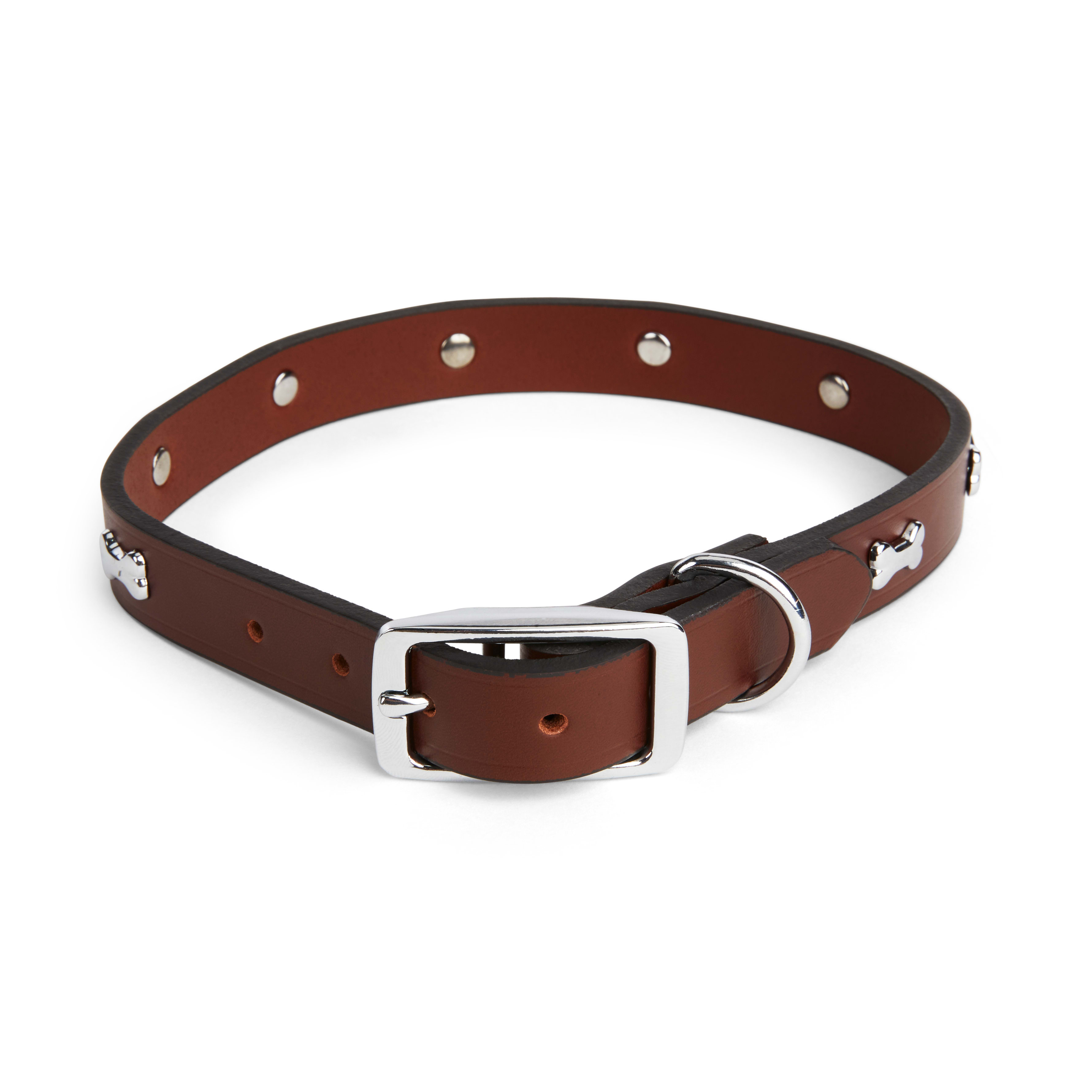 YOULY The Rebel Brown Leather Bone Stud Dog Collar Medium Petco Very well made.