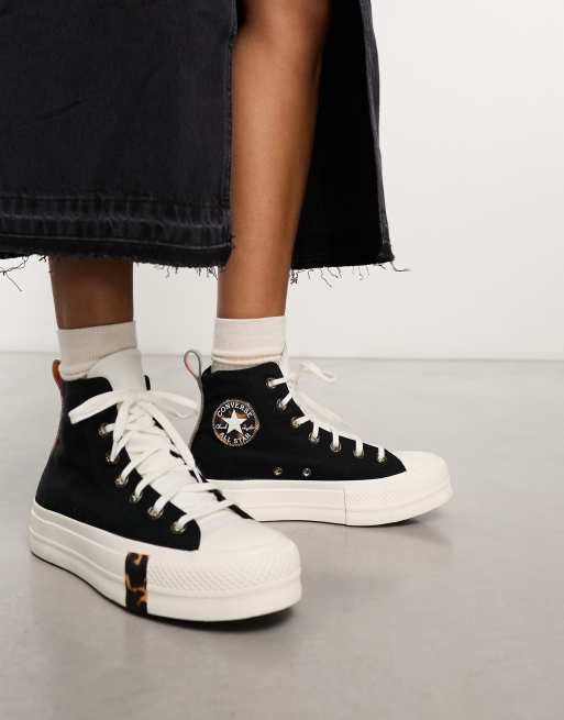 Converse Chuck Taylor All Star lift in black with animal print detailing Very well made.