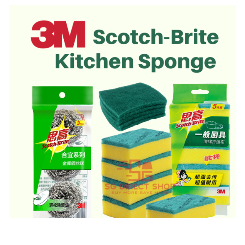 3M Kitchen Sponge Heavy duty Sponge Stainless Steel Pad Very well made.