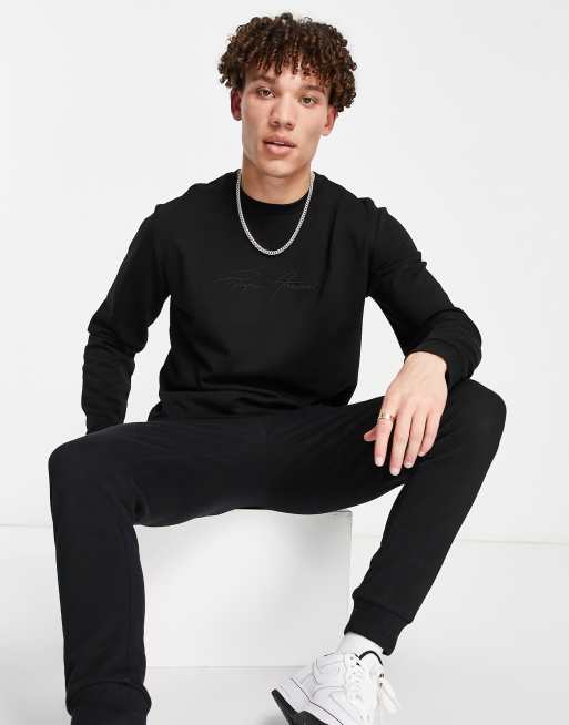 Emporio Armani script logo sweat in black Very well made.