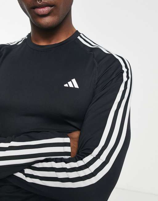 adidas Training Techfit 3 stripe long sleeve t shirt in black ASOS Very well made.