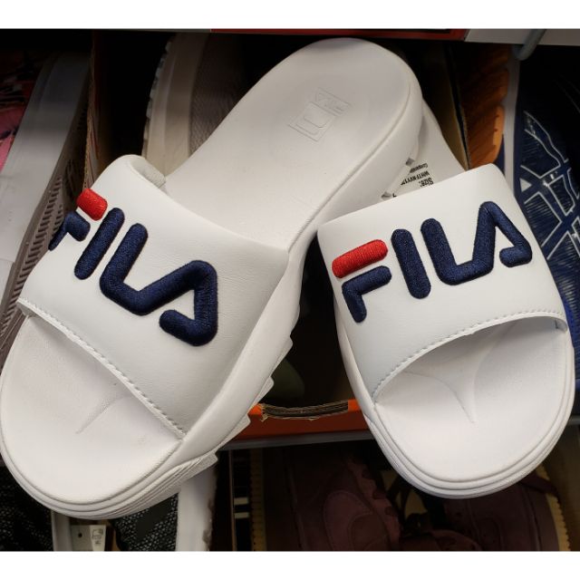 FILA LOGO DISRUPTOR BOLD SLIDE SANDAL WHITE RED BLUE Very well made.