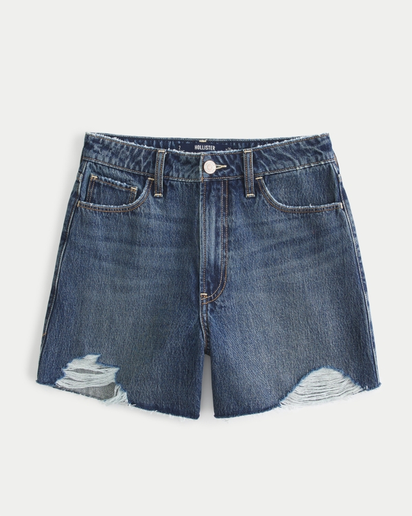 Women s Ultra High Rise Ripped Medium Wash Denim Mom Shorts Very well made.