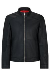 HUGO Extra slim fit leather jacket with red lining Very well made.
