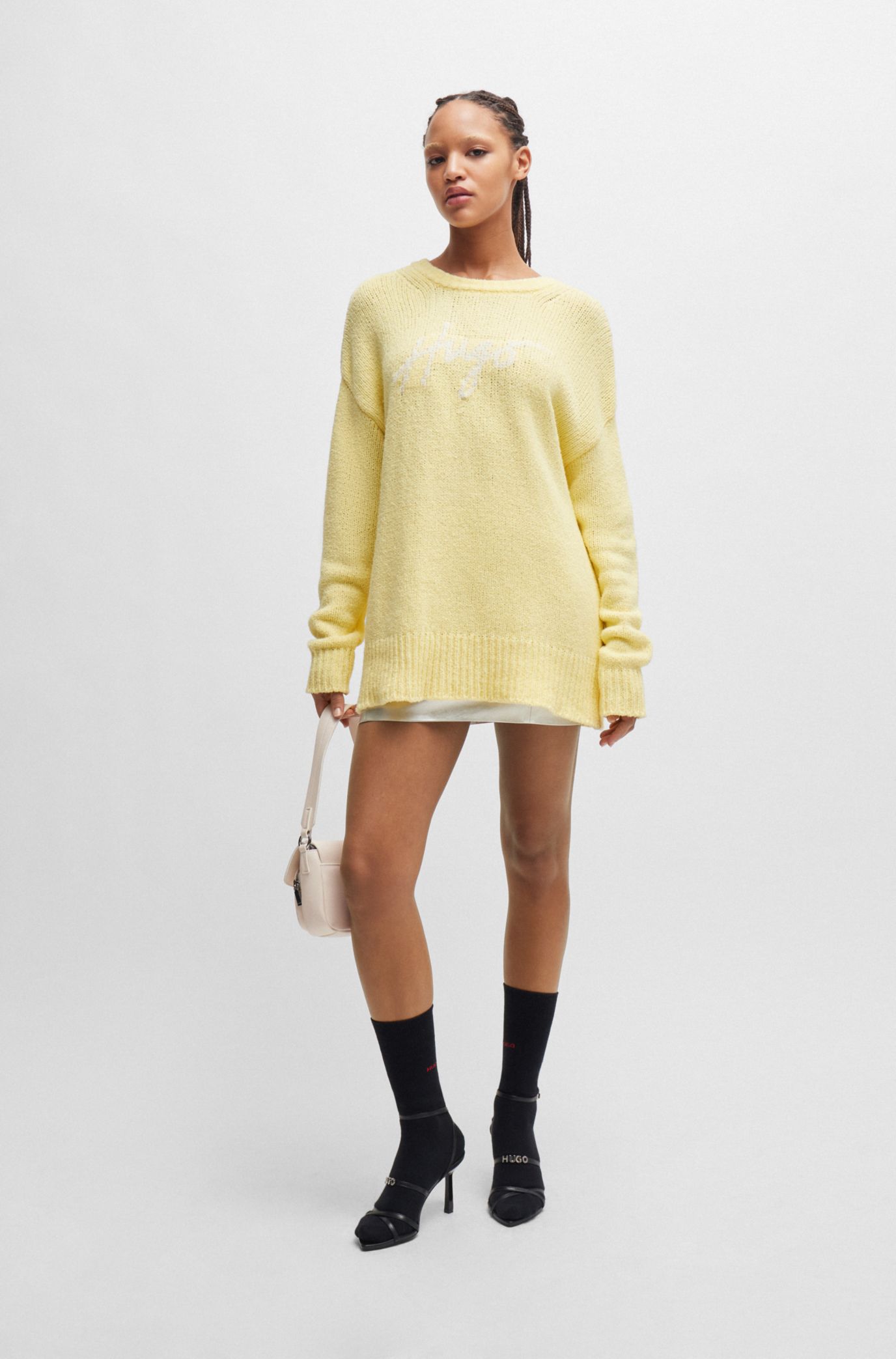 HUGO Cotton blend oversized fit sweater with handwritten logo Very well made.