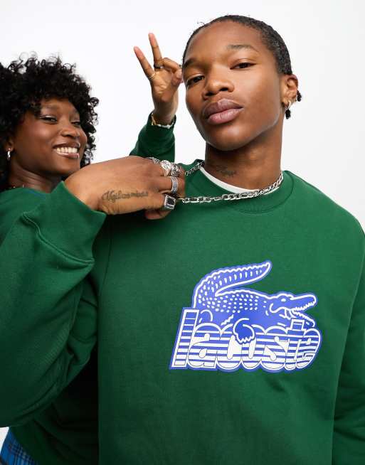 Lacoste Unisex sweatshirt in dark green with front graphics Very well made.